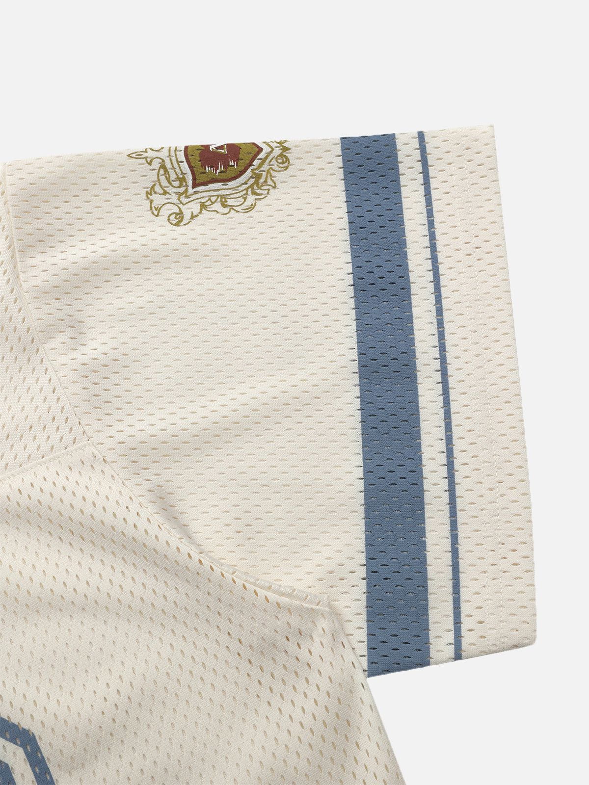 Soft beige meets sporty blue in this breezy mesh tee??featuring a bold 08 graphic. it blends gentle energy with dynamic flair. Lightweight and breathable. it’s your go-to for effortless summer style.