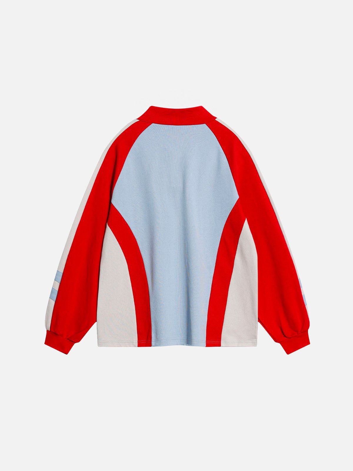 Brighten up your look with this Color Blocking Sweatshirt. Featuring a dynamic mix of light blue with bold red and white accents. it combines vibrant color blocking with a comfortable fit. Perfect for adding a splash of color to your casual outfits.