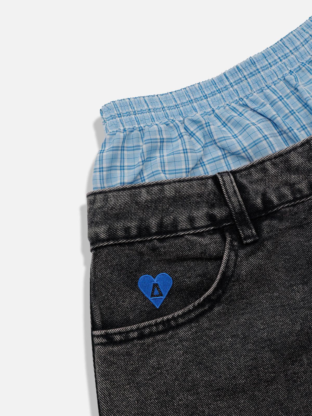 Featuring a double waistband design. these denim pants create the illusion of layered styling without the bulk. delivering a built-in edge that’s bold. unexpected. and instantly street-ready. whether you’re pairing them with a cropped tee or oversized hoodie.