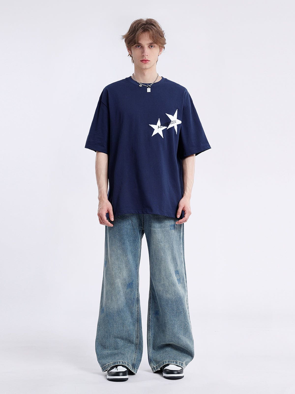 Aelfric Eden Embroidery Star Tee. with its unique abstract design. is simple yet stylish. It showcases individual charm. making you stand out from the crowd.