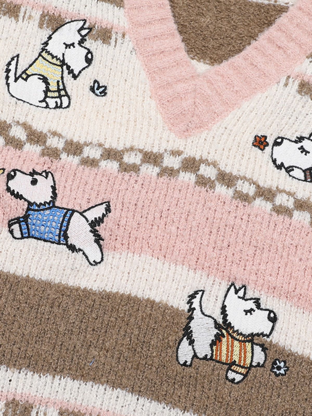 Featuring a playful cartoon design of a West Highland White Terrier. this sweater vest adds a cute and fun touch to any outfit. Soft and comfortable. it’s perfect for bringing a cheerful and whimsical vibe to your casual wardrobe.