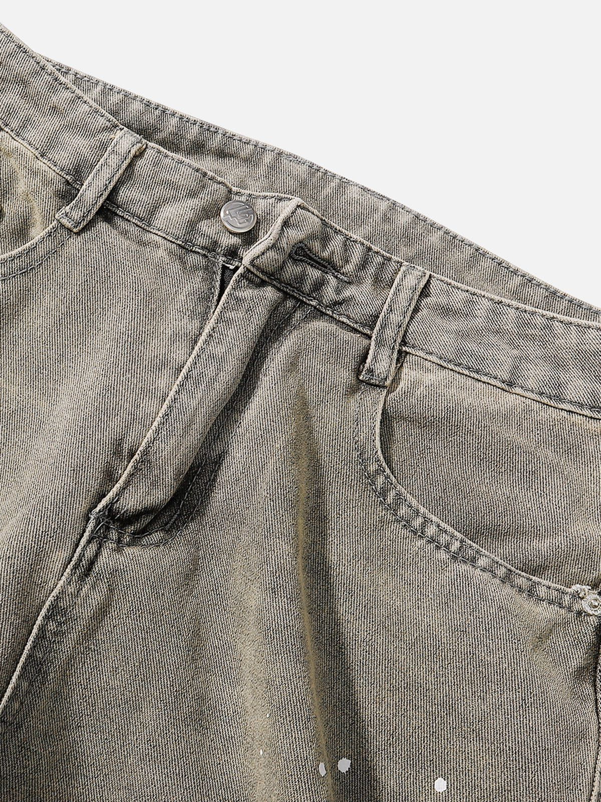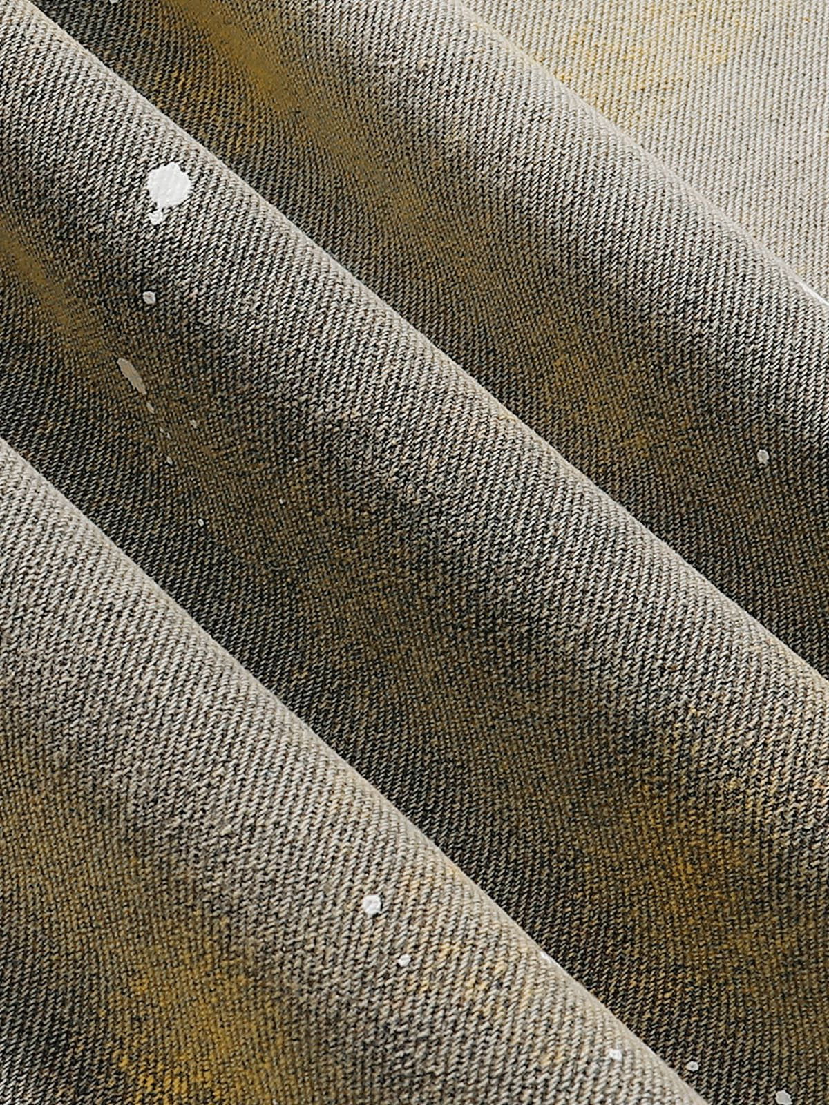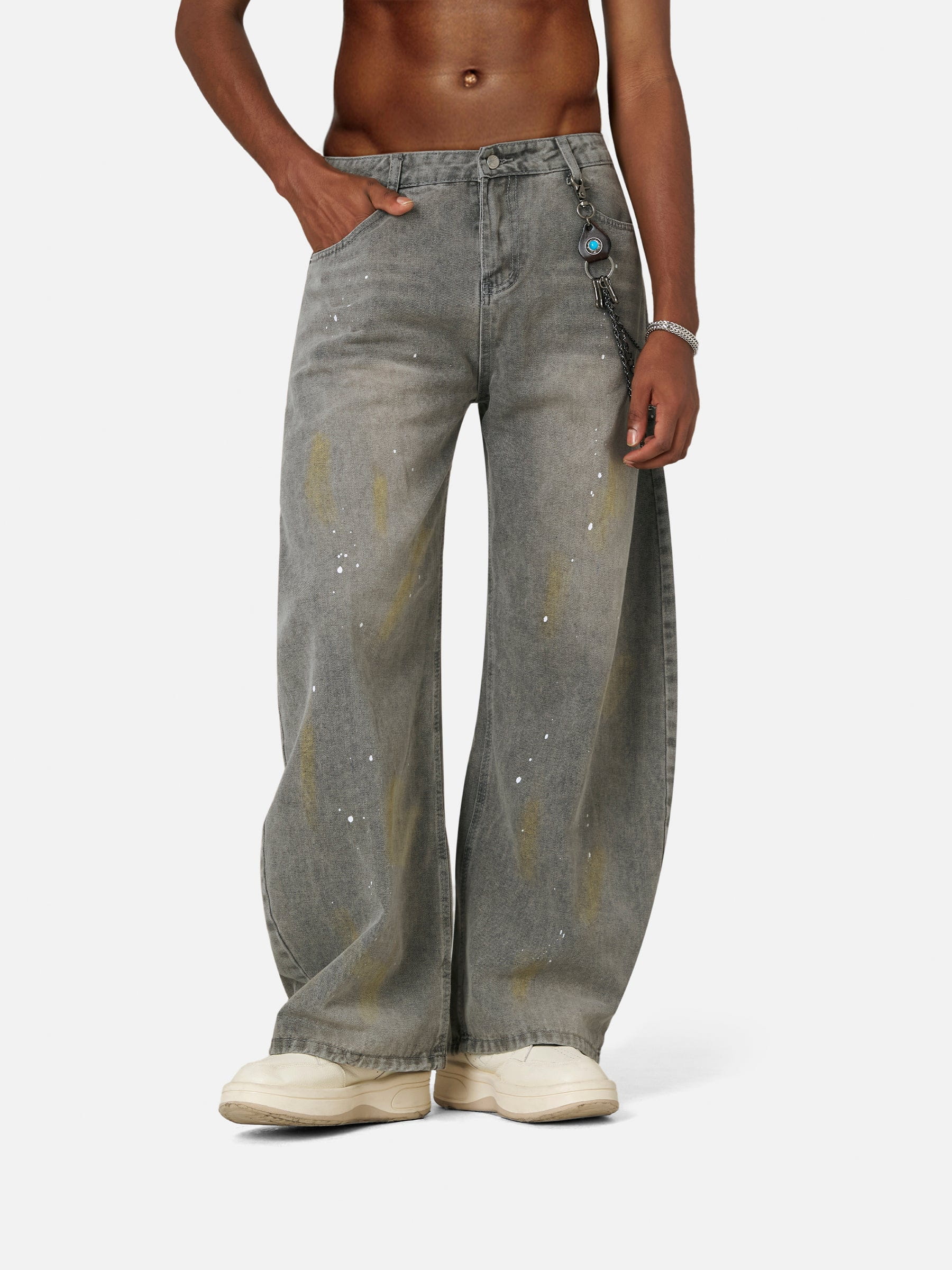 The Jeans bring a painterly edge to streetwear with bold wash fades and raw ink-like speckles. The barrel-leg silhouette is wide. wild. and ready to make noise.