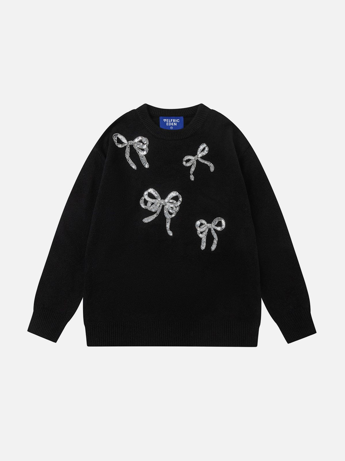 This Sequins Bow Sweater features delicate details Sequins that add subtle sparkle and texture to its elegant bow design. Crafted for comfort and warmth. it offers a cozy fit that supports your style with a gentle. refined touch. Perfect for adding a bit of shine to your everyday wardrobe while staying comfortable.