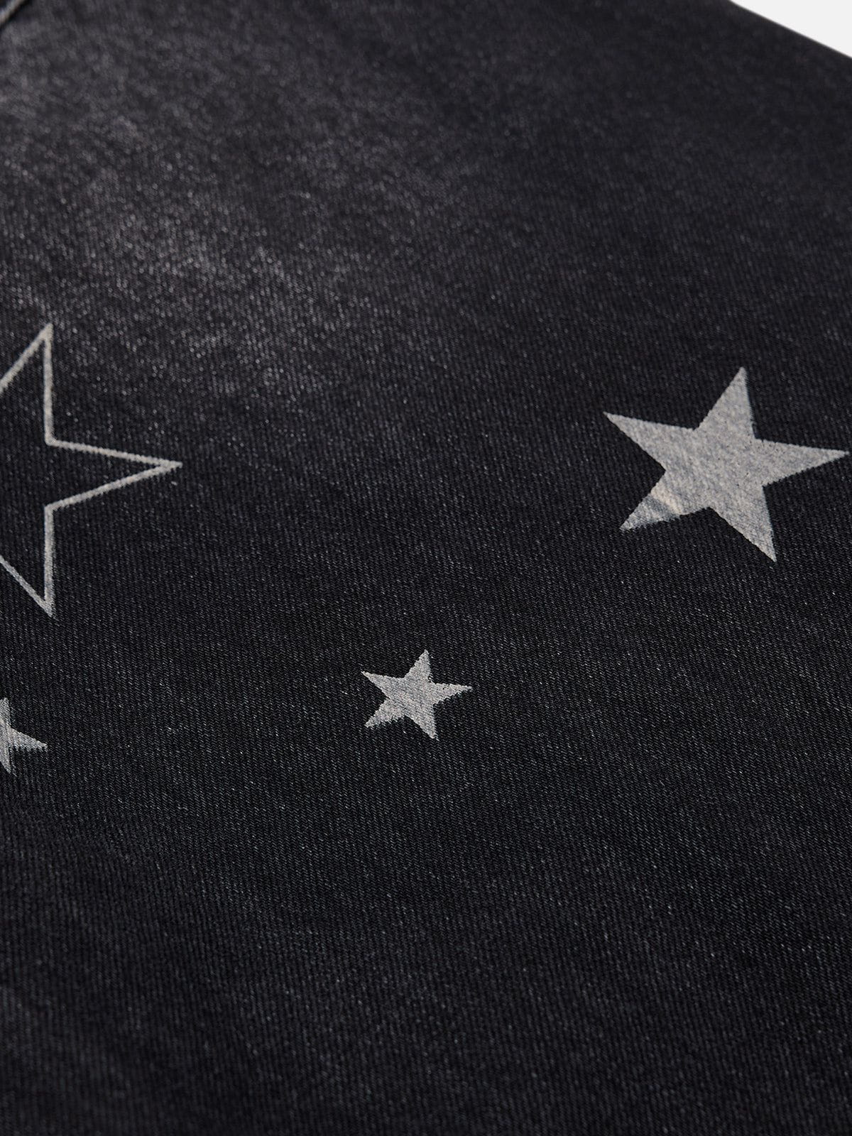 These Washed Whiskering Star Barrel Jeans feature bold graphic star accents that instantly elevate your denim game. With a relaxed barrel fit and distressed whiskering. they deliver both style and comfort for a confident. trendsetting look. Perfect for making a statement while enjoying effortless wear throughout your day.