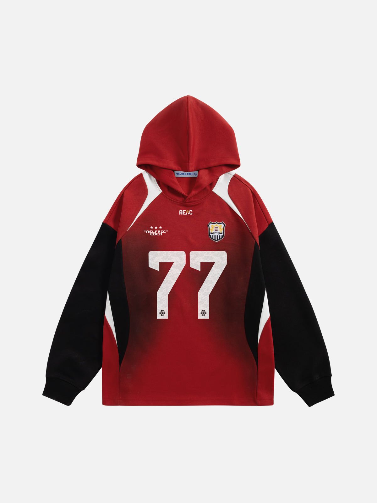 The 77 Color Blocking Pullover Hoodie features bold contrasting panels and a clean design that brings a fresh. athletic edge to everyday wear. A comfortable essential with a modern streetwear attitude.