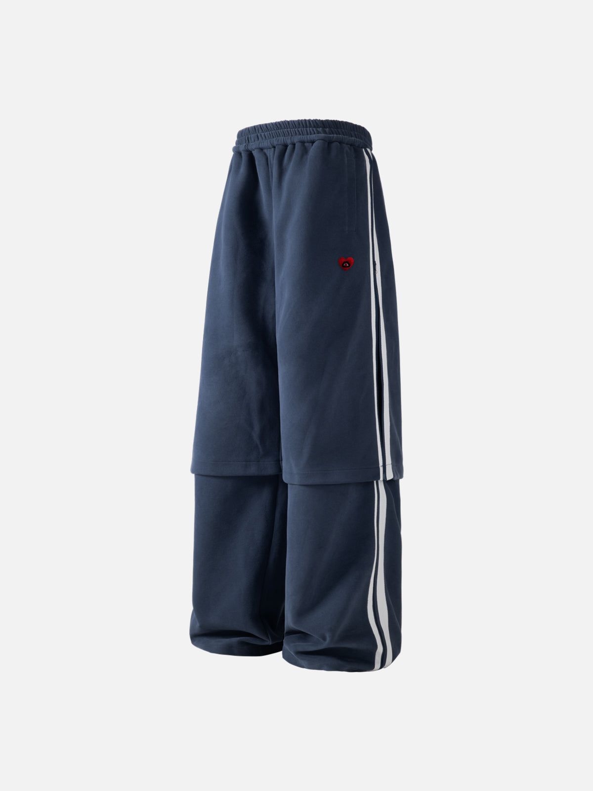 Stripe zip-up two layer sweatpants combine innovative design with practical comfort. featuring a dual-layer construction that enhances durability and style. The zip-up detail allows for easy adjustment and a tailored fit. making them an essential choice for those seeking both functionality and a sleek. modern look.