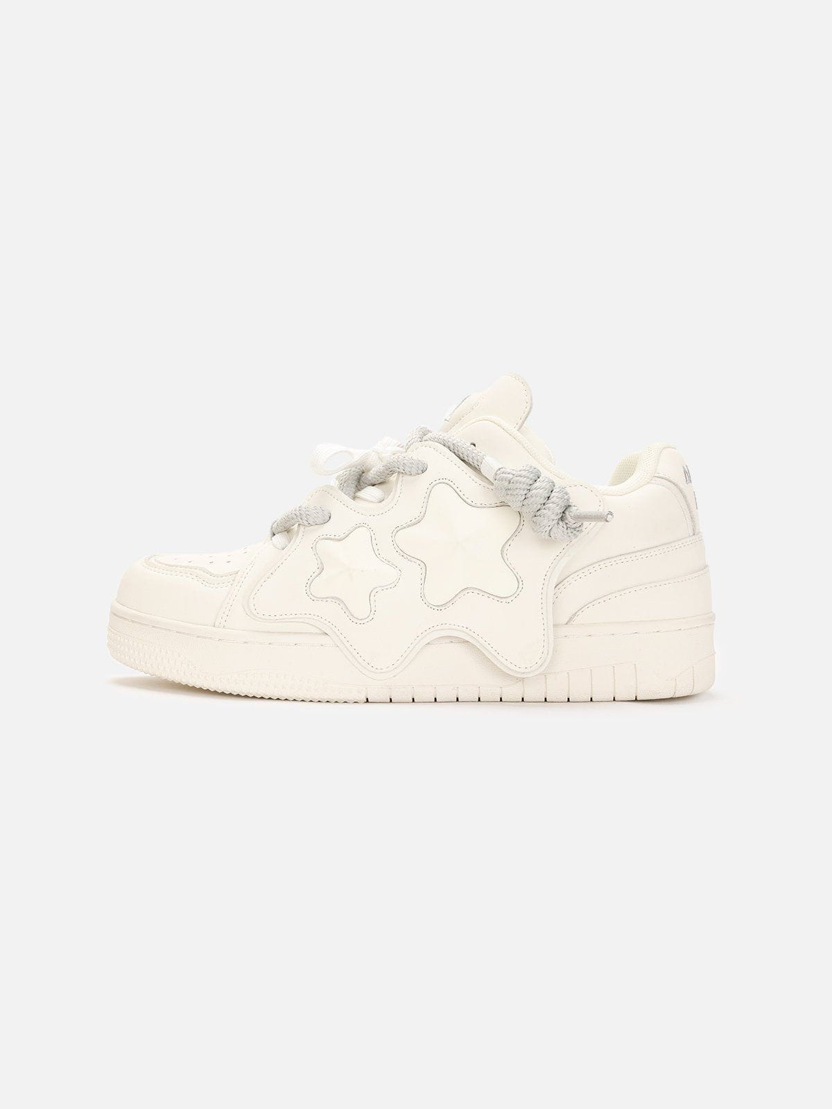 Embrace the urban vibe with our skateboard shoes. showcasing a chic magic tape design adorned with beige stars. Engineered with a sturdy rubber outsole for optimal grip and durability. Finished with brand embroidery at the heel. these shoes blend style with performance.