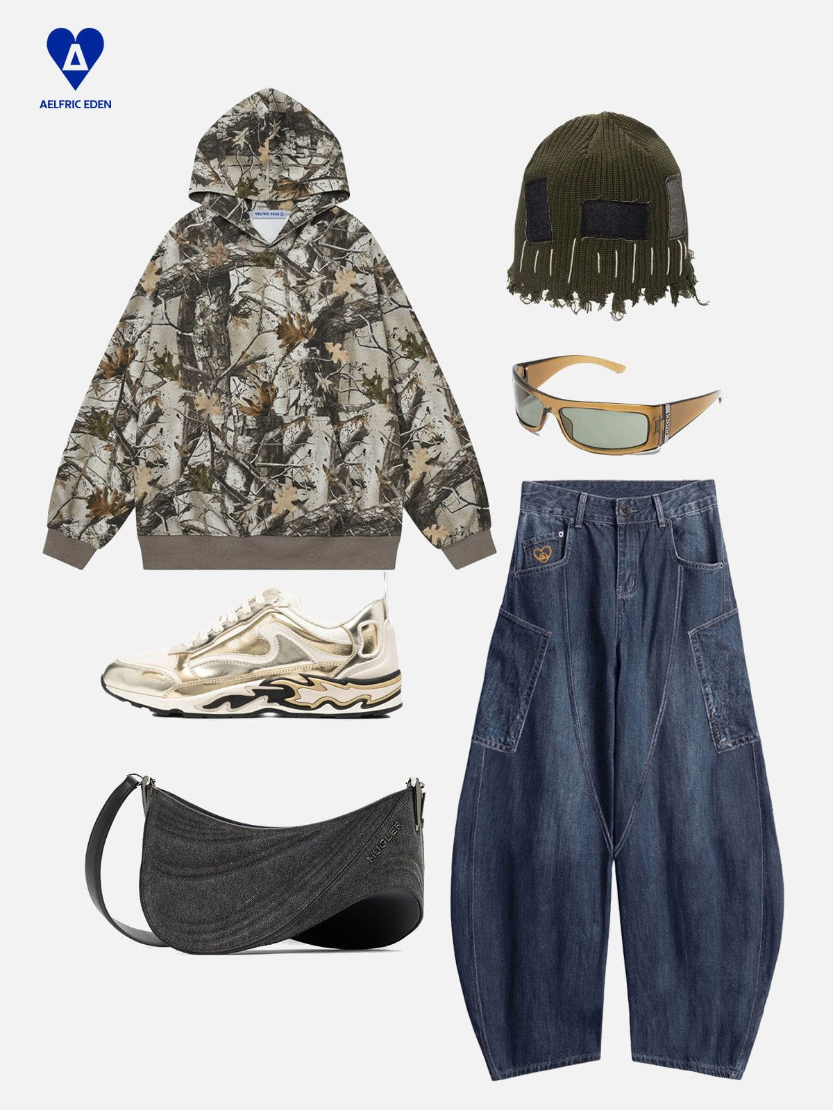 Featuring an eye-catching all-over camouflage print with a unique tree branch pattern for an edgy. natural look. The soft fabric ensures comfort and the bold design makes it a leader in casual streetwear.