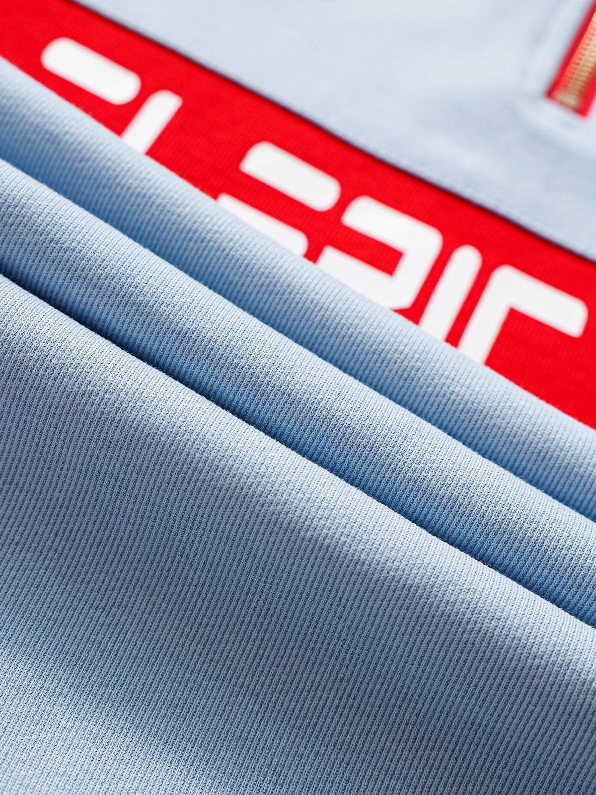 Brighten up your look with this Color Blocking Sweatshirt. Featuring a dynamic mix of light blue with bold red and white accents. it combines vibrant color blocking with a comfortable fit. Perfect for adding a splash of color to your casual outfits.