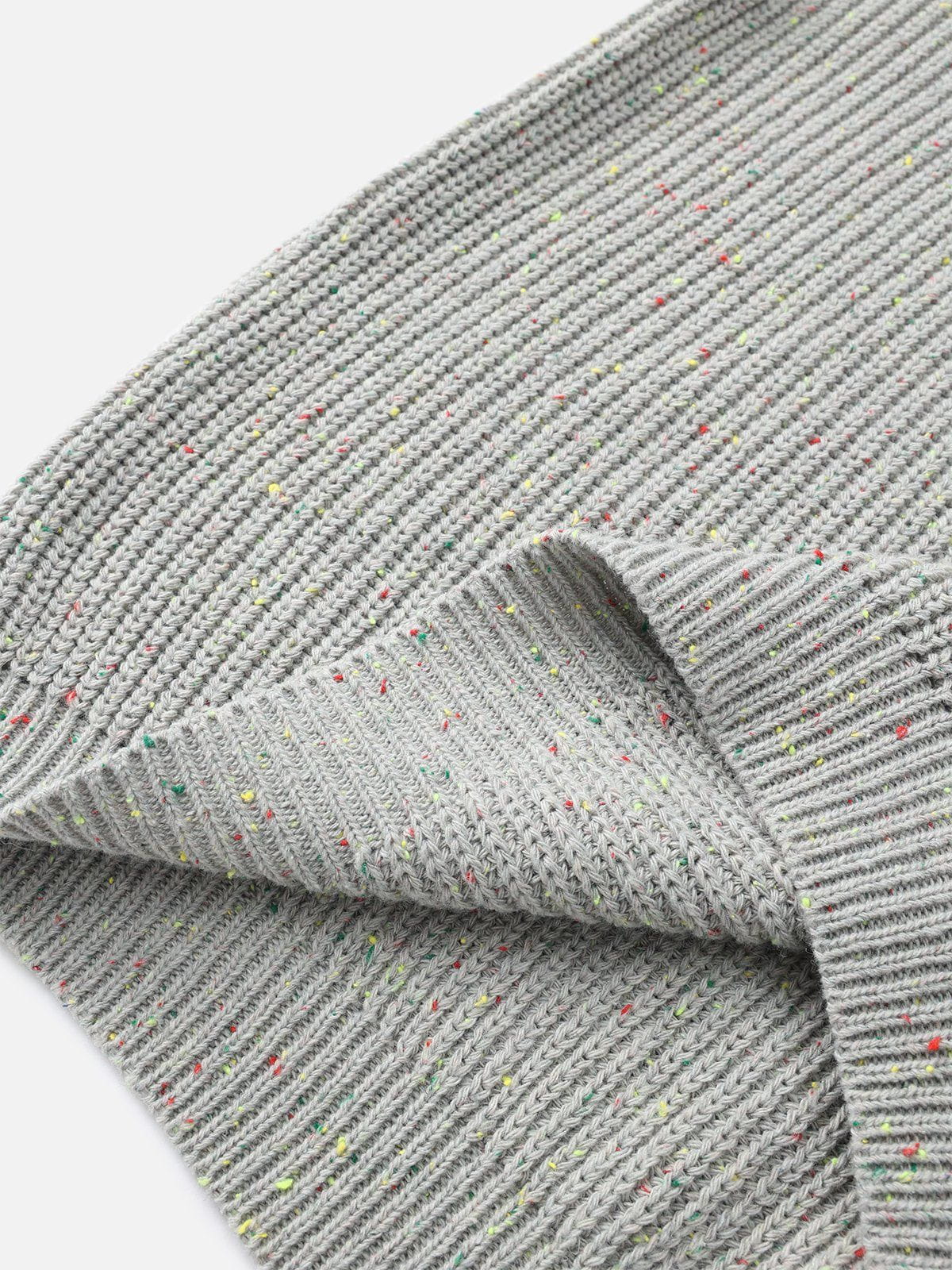 Experience the playful elegance of the Aelfric Eden Colorful Point Knit Sweater. The grey background is enlivened by colorful dots. creating a captivating contrast. With expert craftsmanship and a unique design. this sweater is a stylish addition to any wardrobe.