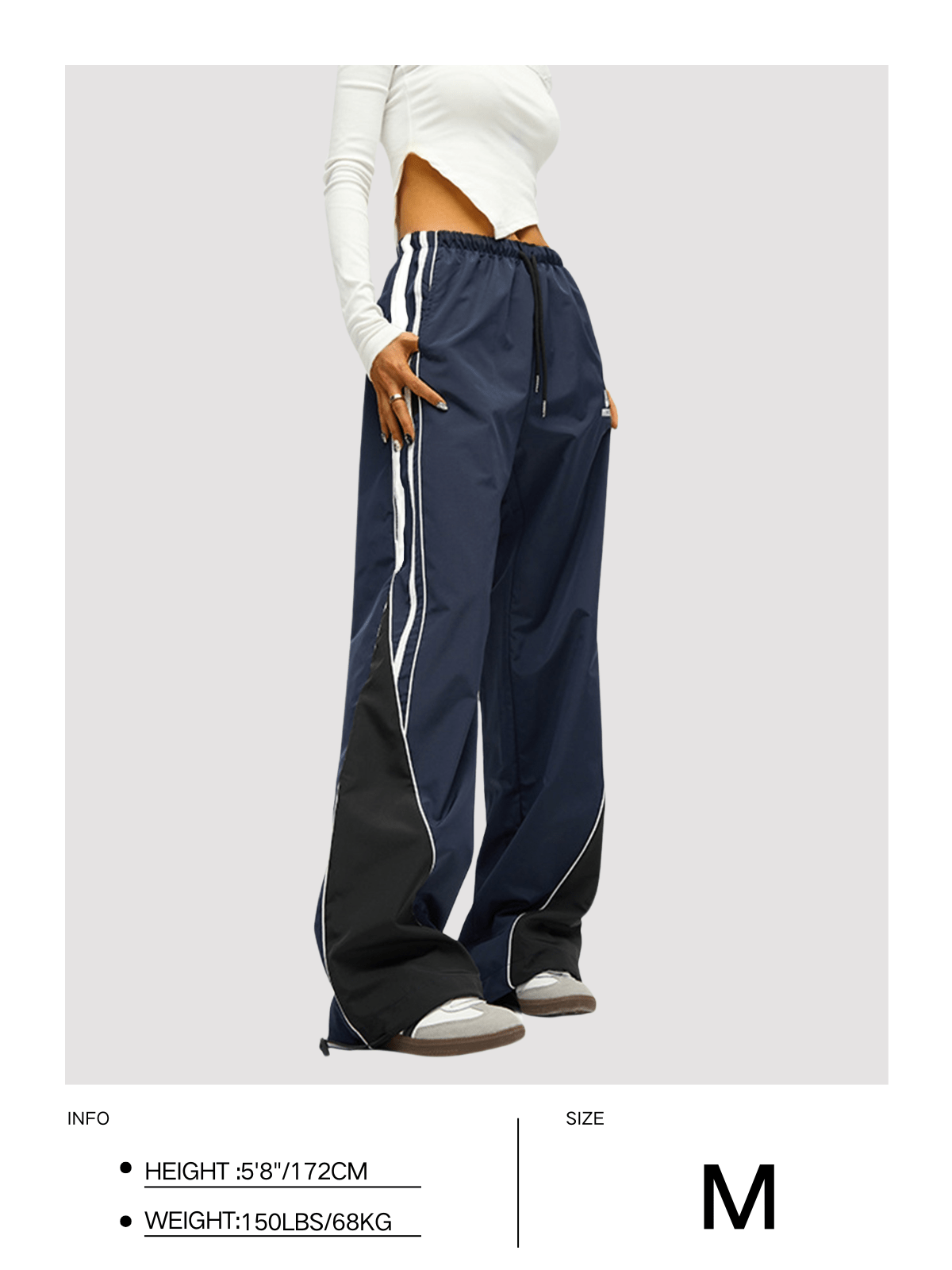 These baaggy track pants feature retro blocking. stripe panels. and bold embroidery for a fresh streetwear look. The breathable. wrinkle-resistant polyester and adjustable cuffs offer comfort and style. Perfect for skater fits. hip-hop outfits. urban fashion outfits. or casual athleisure.