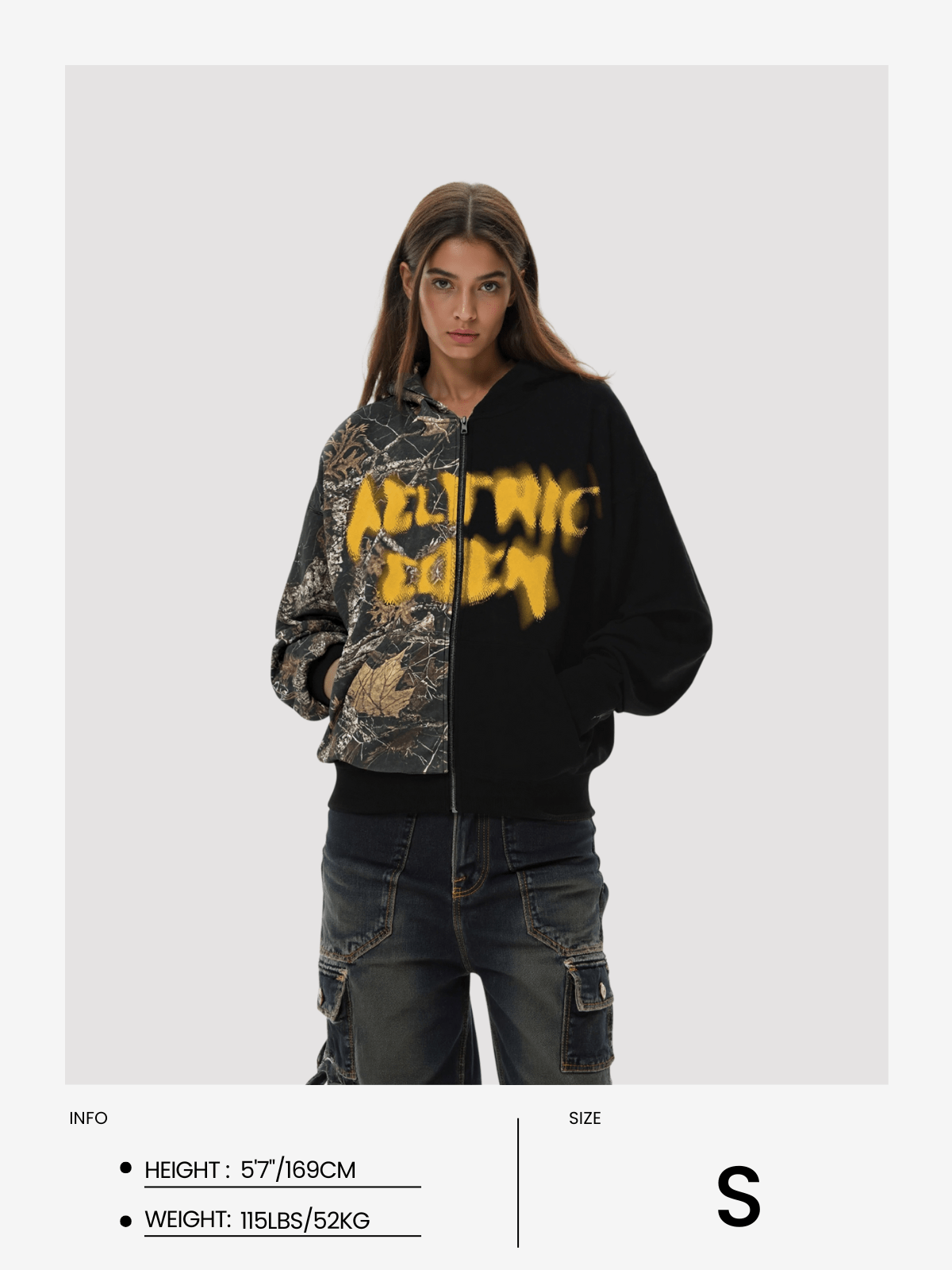 The CAMO Graffiti Patchwork Zip Up Hoodie offers a blend of rugged camouflage and artistic graffiti patches for a distinctive look. Featuring a convenient zip-up design. it provides easy layering and a comfortable fit. This hoodie supports your everyday style with a unique edge and reliable comfort.