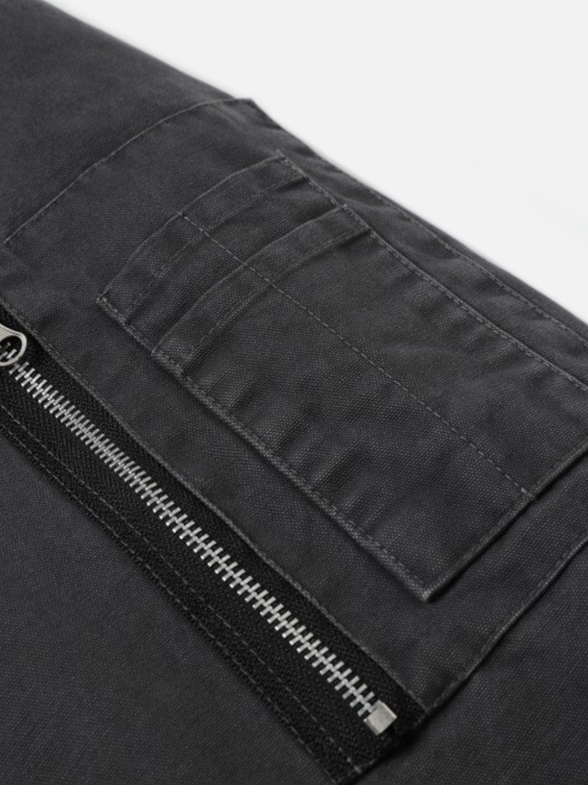 Featuring an expertly tailored oversized silhouette. the Multi Pocket Zip Up Bomber Jacket combines modern aesthetics with practical design. Multiple functional pockets offer ample storage while maintaining a clean. streamlined look. The zip-up closure enhances versatility. and the classic bomber style provides timeless appeal. making it a refined choice for elevated casual wear.