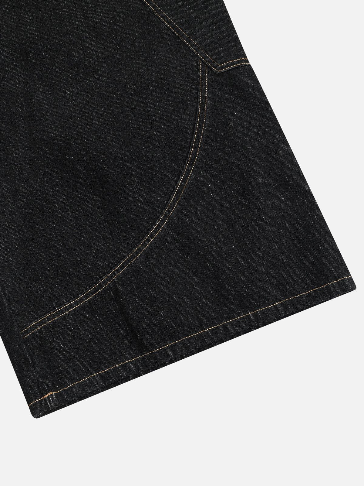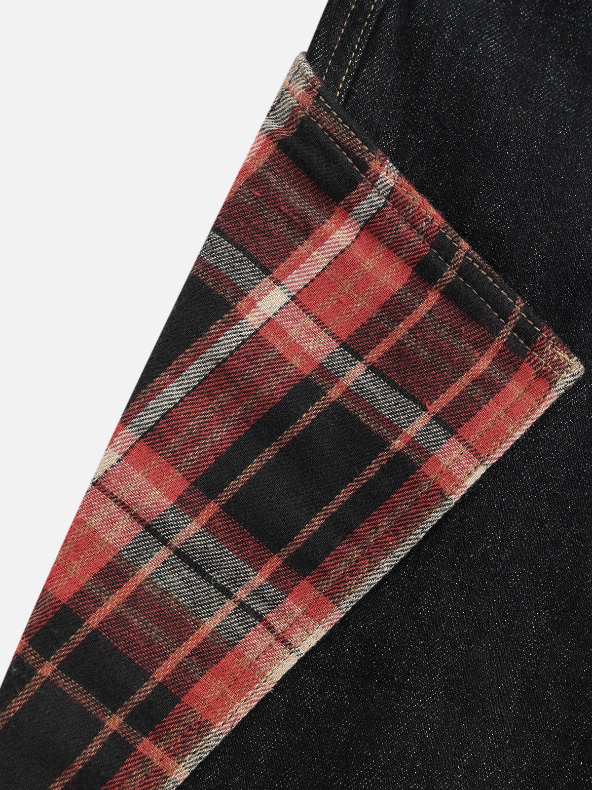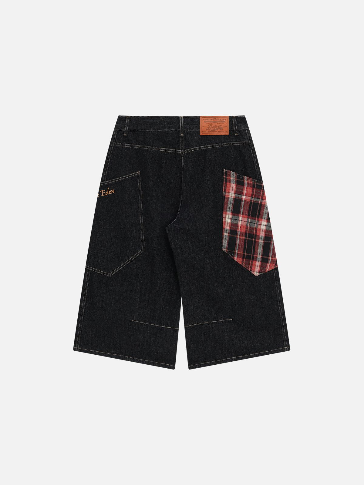 These longline jorts reimagine classic denim with a streetwise twist. featuring oversized plaid patch pockets for a bold contrast hit. The straight. relaxed silhouette hits just below the knee. giving off effortless workwear energy while staying true to contemporary streetwear form.?