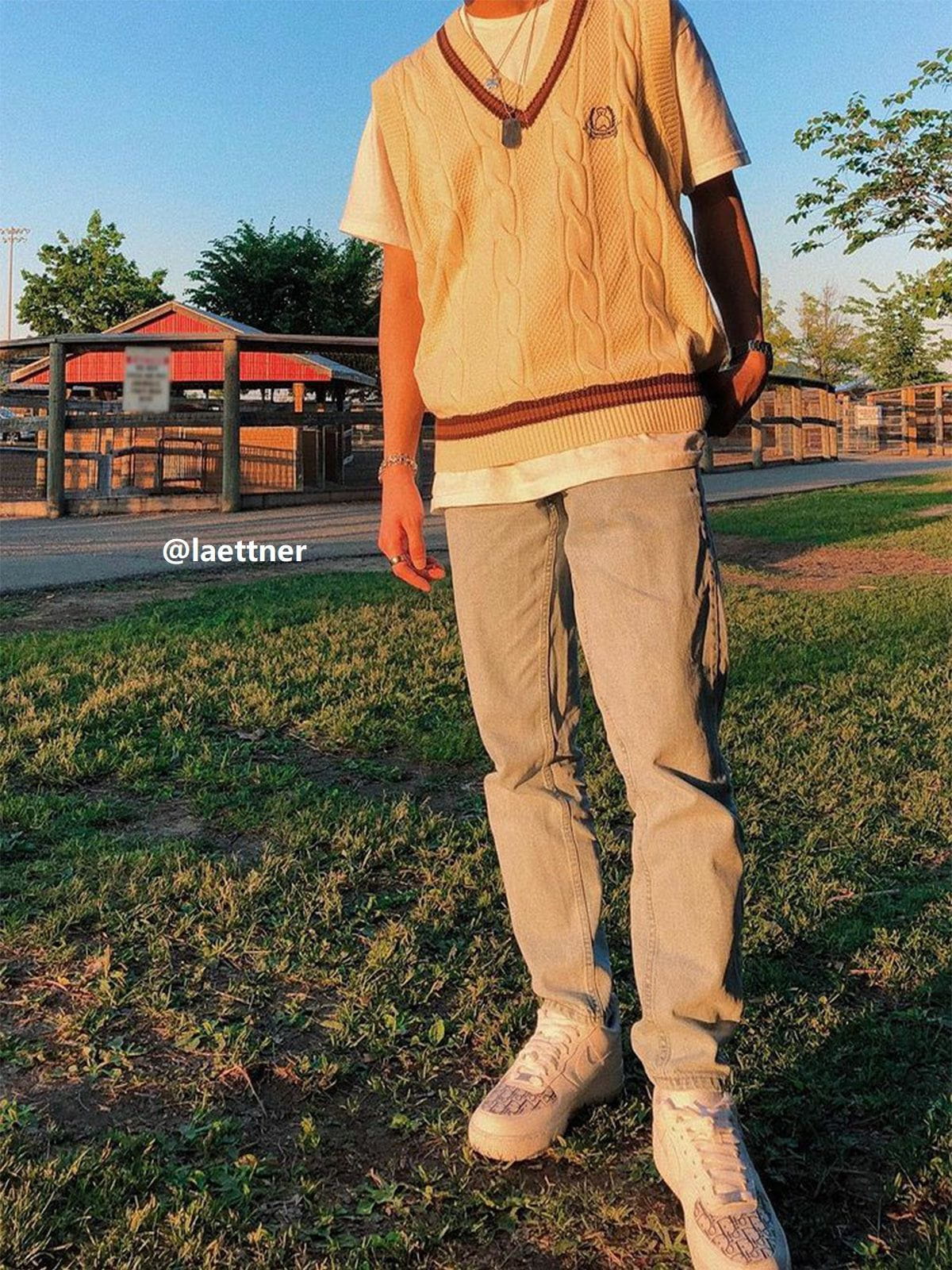 This Vintage Preppy Style Knitted Sweater Vest brings you the feeling of going back to school and matches it with a white shirt and jeans. full of the campus atmosphere.