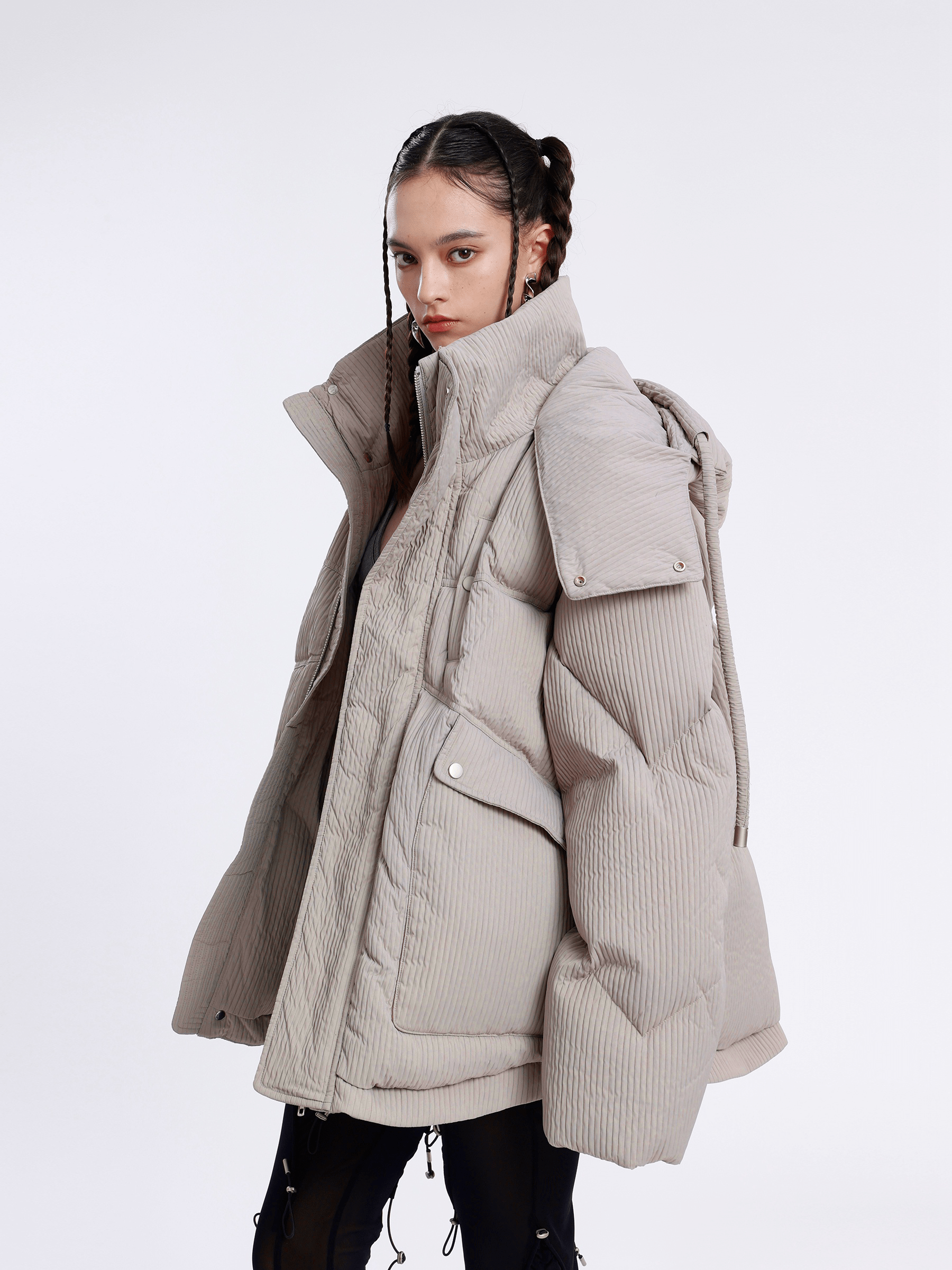 Adjustable drawcord hood.
