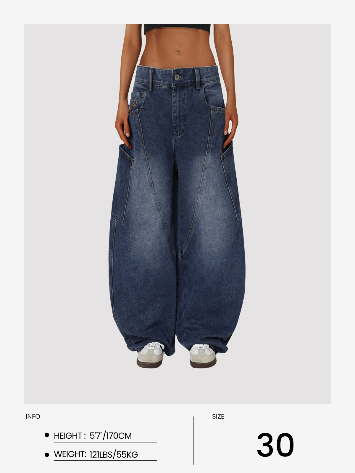 Add this trendy Jeans to your wardrobe. The barrel-shaped design flatters your legs while exuding a relaxed vibe. With two large pockets as stylish accents. these jeans offer both comfort and style.