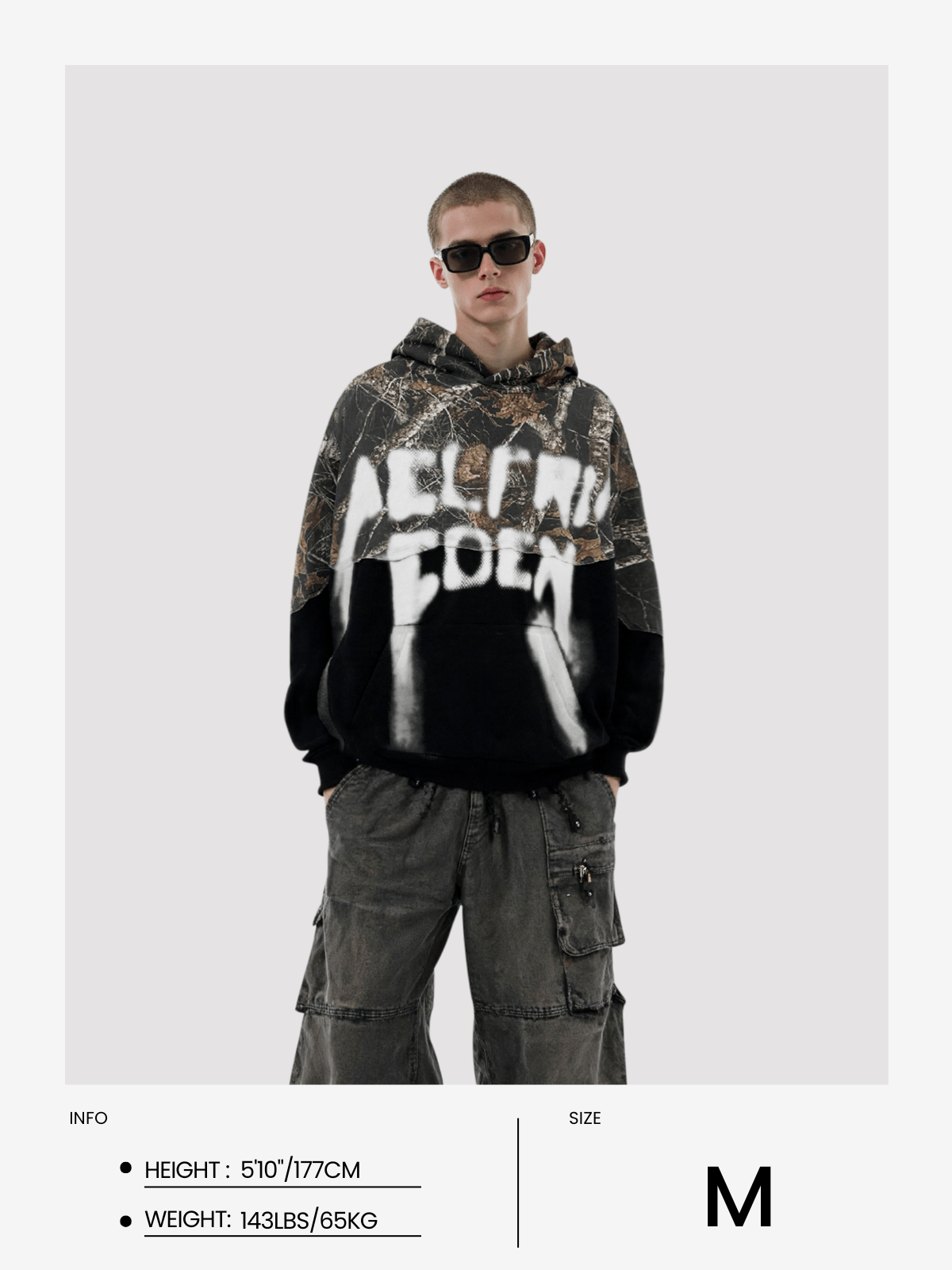 Elevate your casual wardrobe with the CAMO Graffiti Patchwork Pullover Hoodie. which artfully combines classic camouflage with refined graffiti-inspired patches. Tailored for a polished yet comfortable fit. this hoodie offers a sophisticated approach to streetwear. perfect for those who appreciate bold style with subtle elegance.