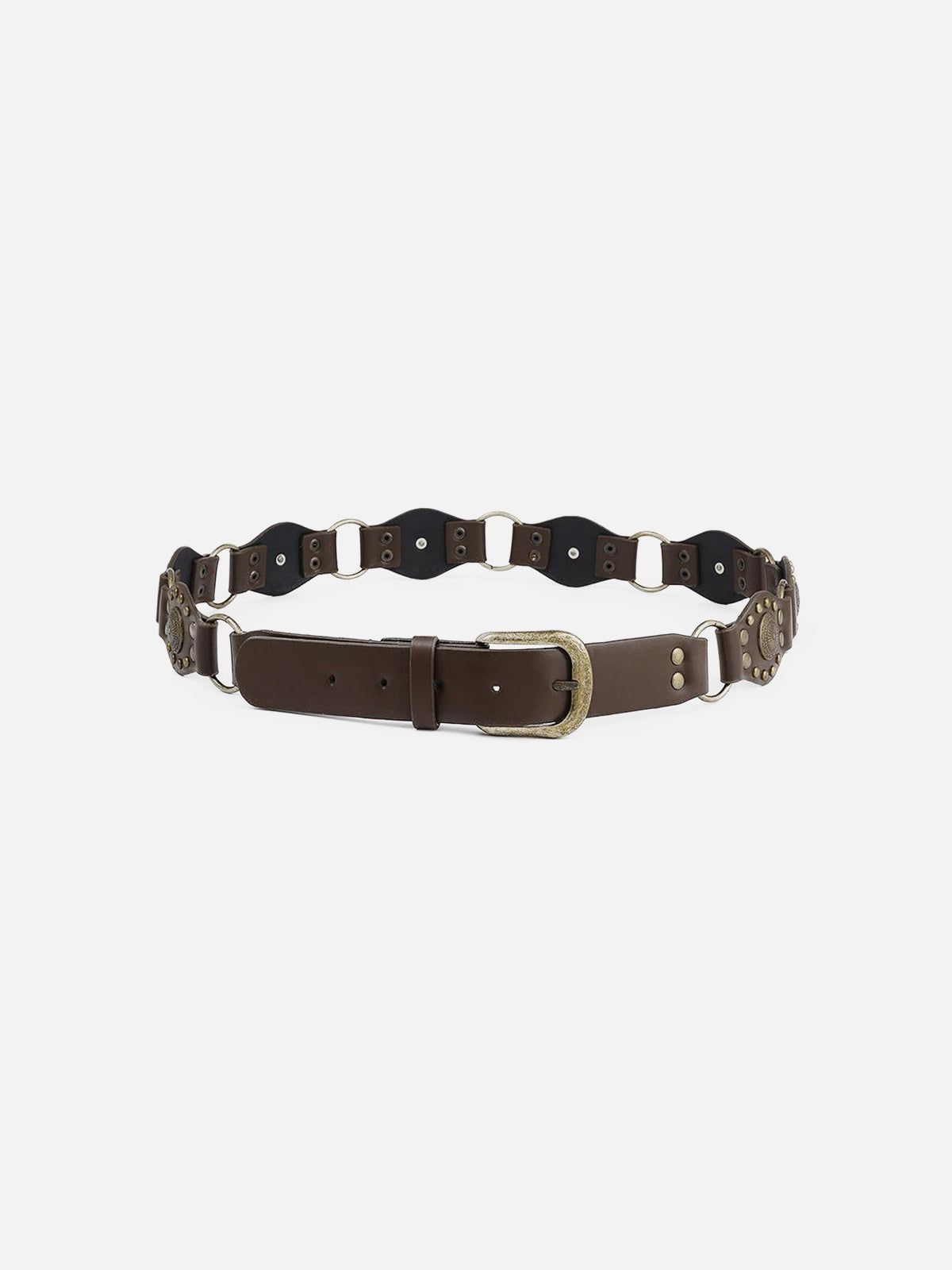 Crafted from faux leather with intricate cutout details and stud embellishments. this belt is a statement piece. Whether you’re rocking a street-retro. denim vintage. or boho-chic look. it adds the perfect finishing touch.